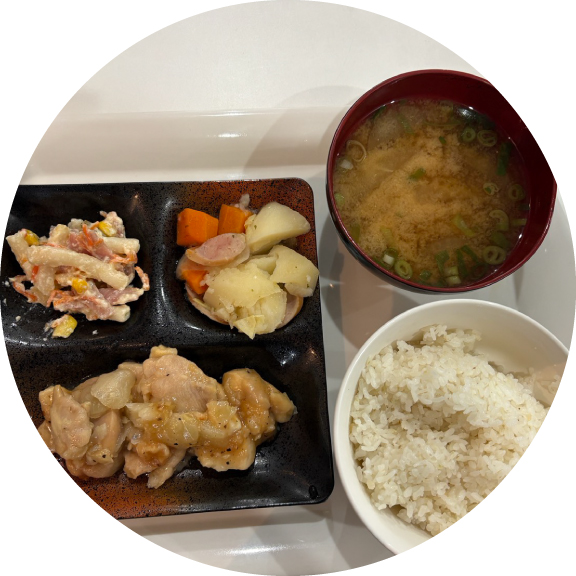 昼食200円(炊きたてご飯、お味噌汁、おかず)